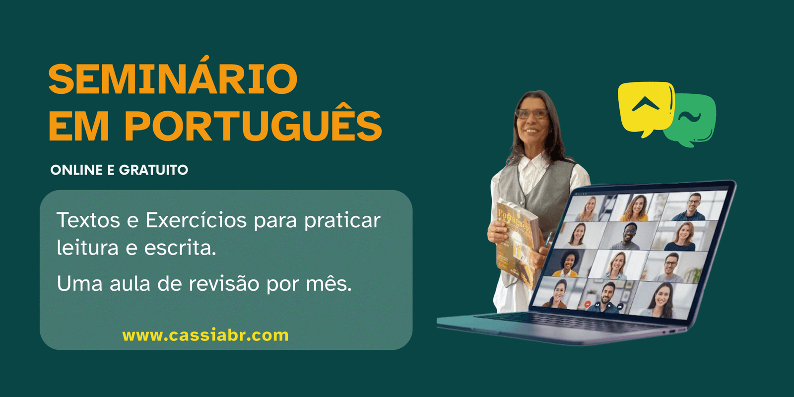 Sou a Cássia Maldonado, por mais de 5 anos tenho enviado, gratuitamente, texto e exercícios, para você superar as barreiras que te impendem conversar em português.