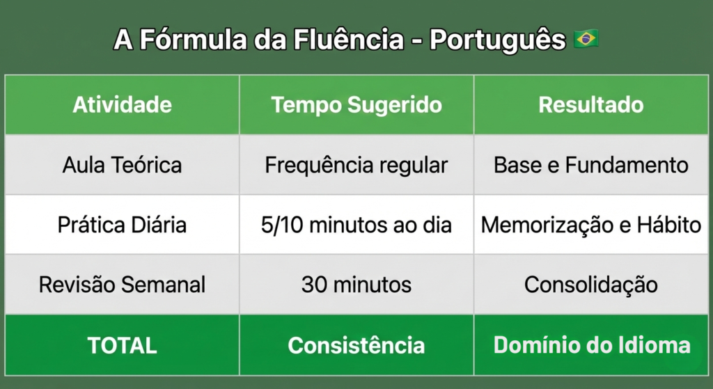 Se for assim, preciso ser honesta contigo: dominar o português do Brasil não acontece por inspiração divina. Acontece por exposição real ao idioma, compreensão da estrutura e prática no dia a dia.