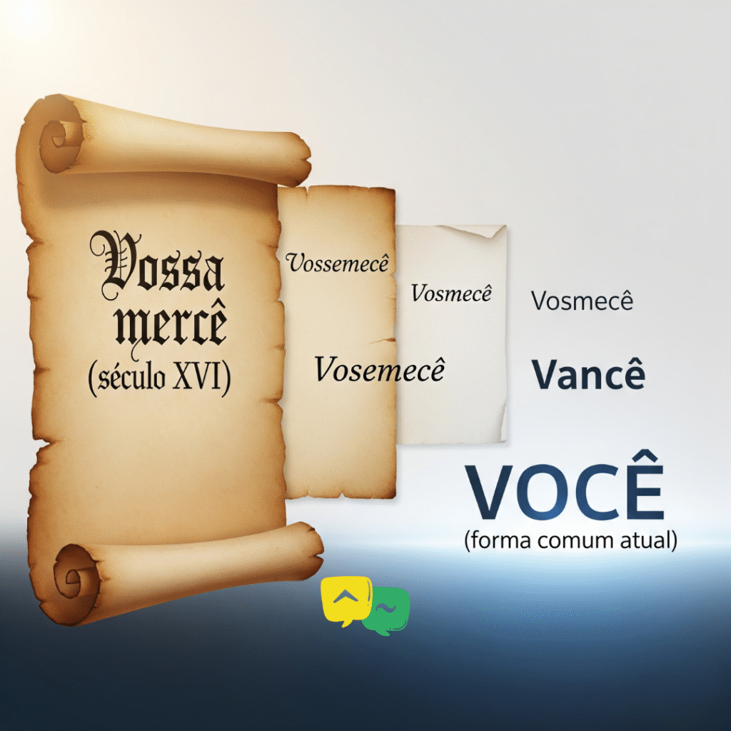 VOCÊ é um pronome de tratamento, e tem uma história interessante, originando-se como VOSSA MERCÊ (sua graça), uma forma de tratamento muito respeitosa. Essa expressão evoluiu e se popularizou, passando por: